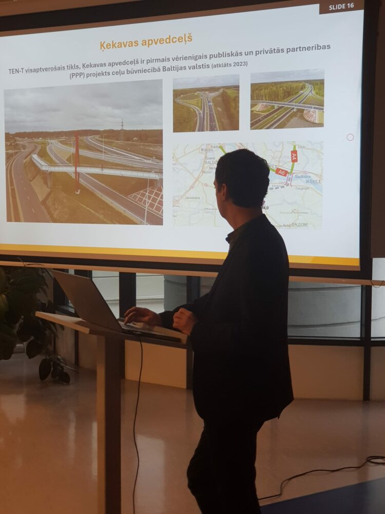 Projekta eksperts Rūdolfs Cimdiņš uzsvēra projekta nozīmi ne vien reģionālajā, bet arī valsts līmenī, izceļot tā potenciālu veicināt ilgtspējīgu attīstību un stiprināt TEN-T koridoru lomu. Tāpat projekta komanda prezentēja dalībniekiem pirmo partneru vizīti Rīgā, kas norisinājās šī gada oktobrī, iepazīstinot ar būtiskākajiem secinājumiem un turpmākās sadarbības iecerēm.