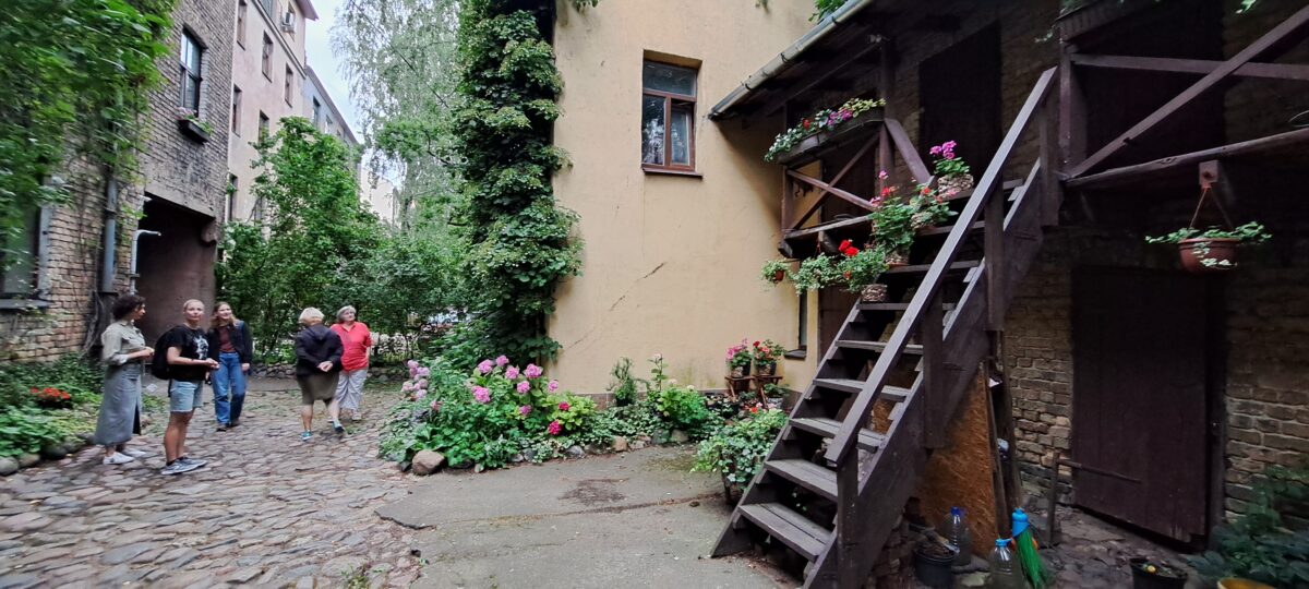 Aicinājām kopienu piedalīties pastaigā pa zaļajiem pagalmiem, uzklausot stāstus no vairākiem stāstniekiem, kam paveicies dzīvot blakus zaļai oāzei – labiekārtotam pagalmam. Katrs no šiem stāstiem bija unikāls savā veidā un cerams, ka veidoja saikni personīgā līmenī ar pastaigas dalībniekiem, liekot aizdomāties par sava pagalma funkcionalitāti un potenciālu gan labākas dzīvesvides veidošanā, gan karstumsalas efekta mazināšanā.