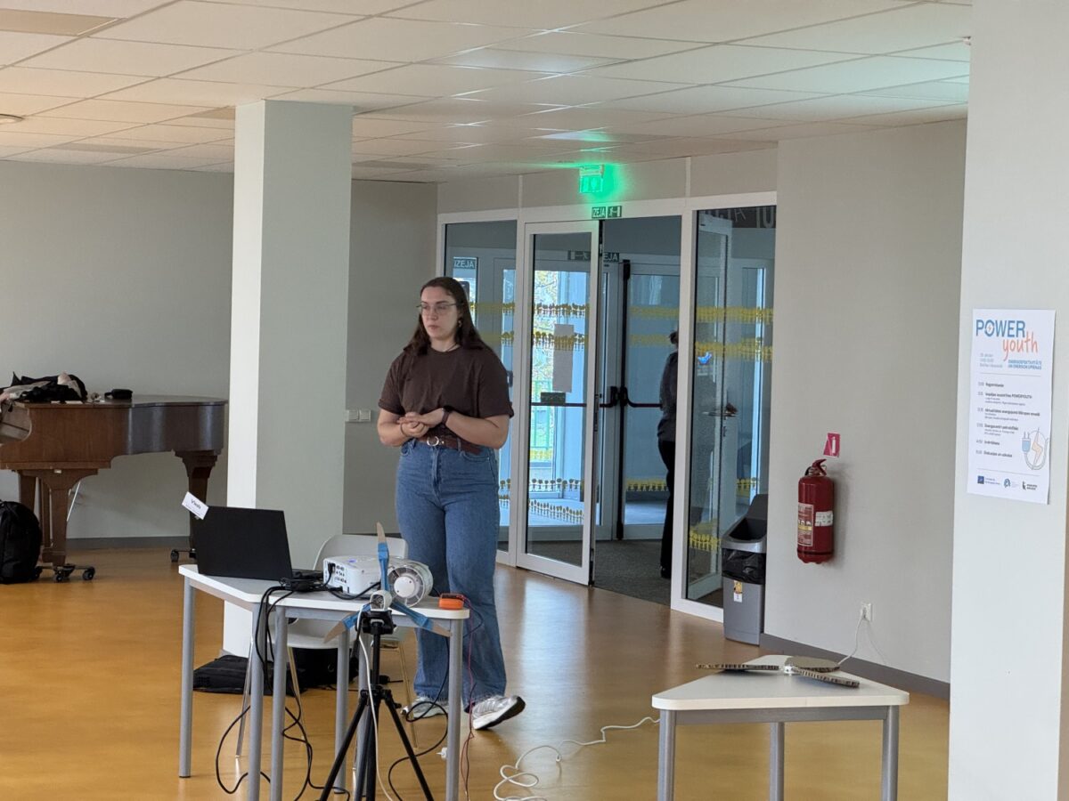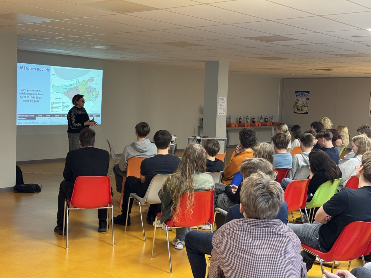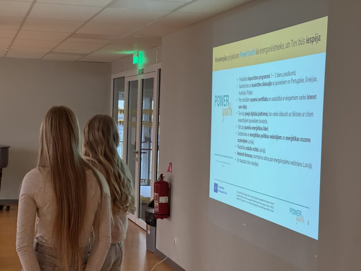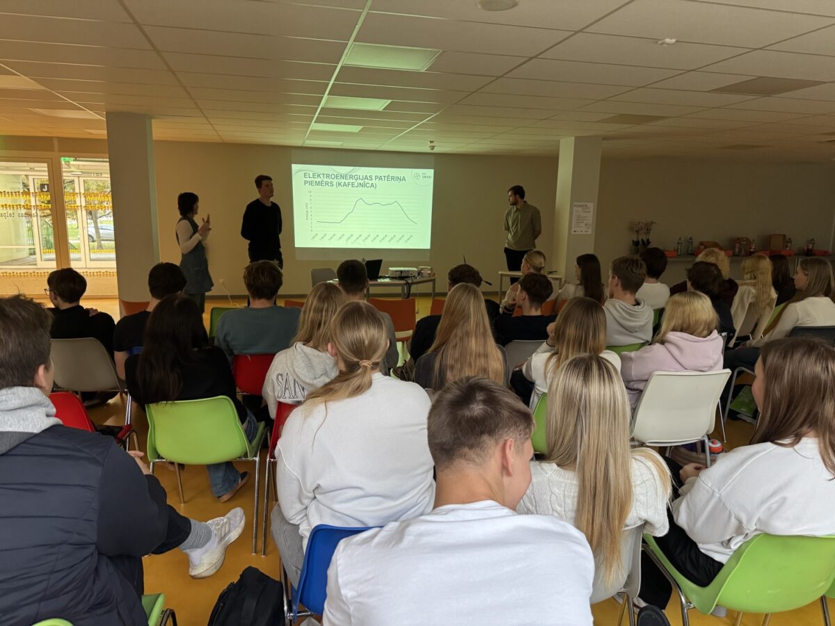 Pasākumu atklāja Rīgas plānošanas reģiona pārstāves Inga Brieze un Liega Krasovska, kura iepazīstināja skolēnus ar projekta POWERYOUTH mērķiem un iespējām jauniešiem piedalīties enerģētikas pārejas procesos.