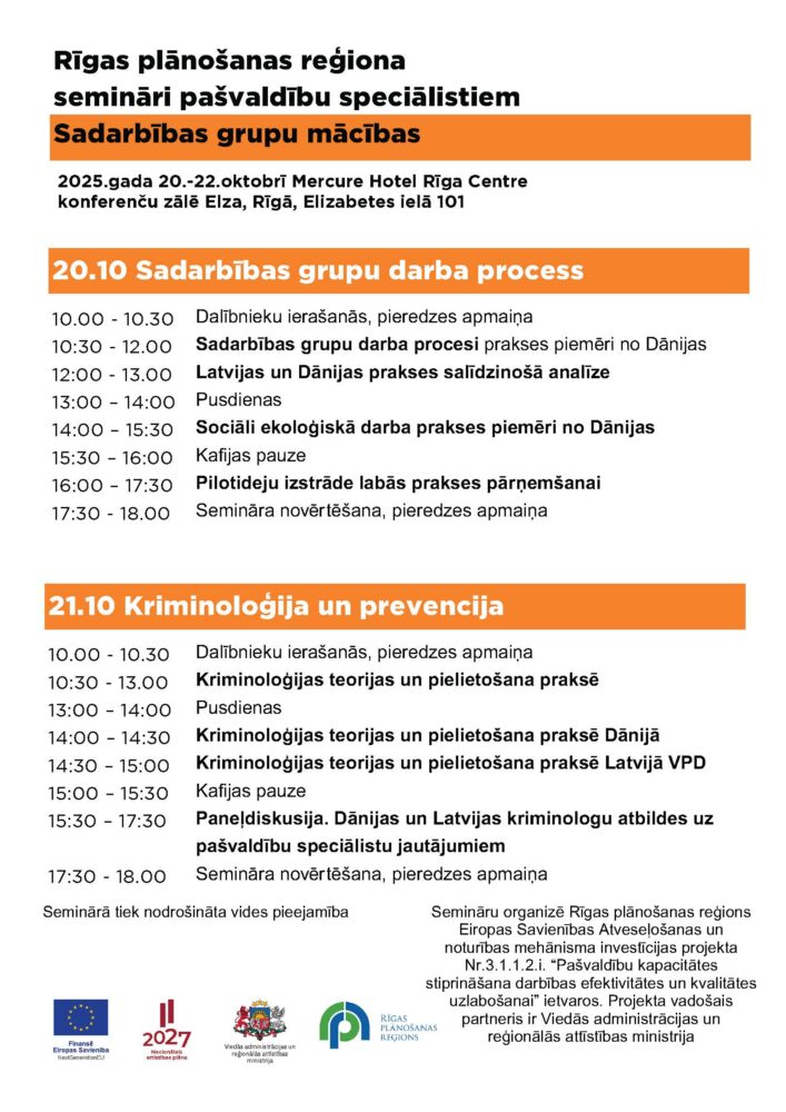 Aicinām pieteikties speciālistus no sadarbības grupām un administratīvām komisijām Rīgas reģiona un citu reģionu pašvaldībās: https://www.visidati.lv/tk/11423031/ Dalībnieki var pieteikties uz interesējošām sadaļām (1 – 2 – 3 dienām):