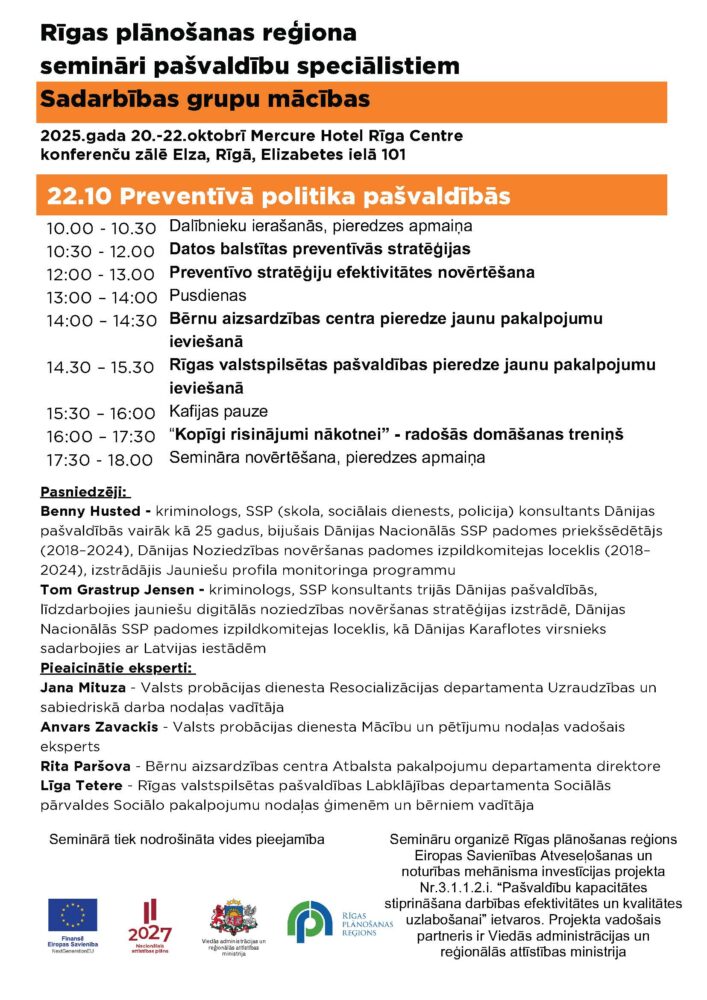Rīgas plānošanas reģiona speciālistu kapacitātes celšanas pasākumi projekta 3.1.1.2.i. “Pašvaldību kapacitātes stiprināšana to darbības efektivitātes un kvalitātes uzlabošanai” ietvaros 2025.gada oktobrī: